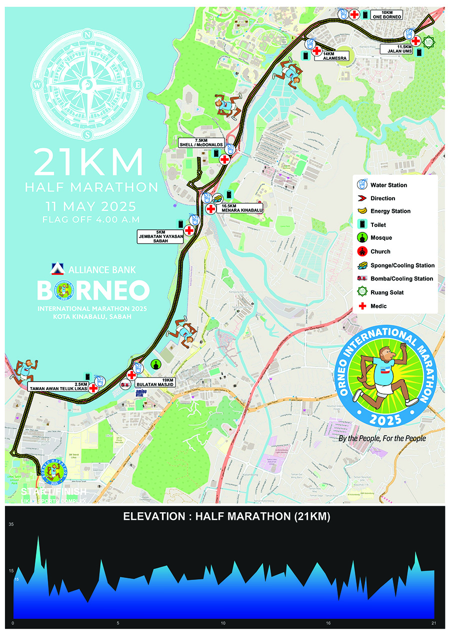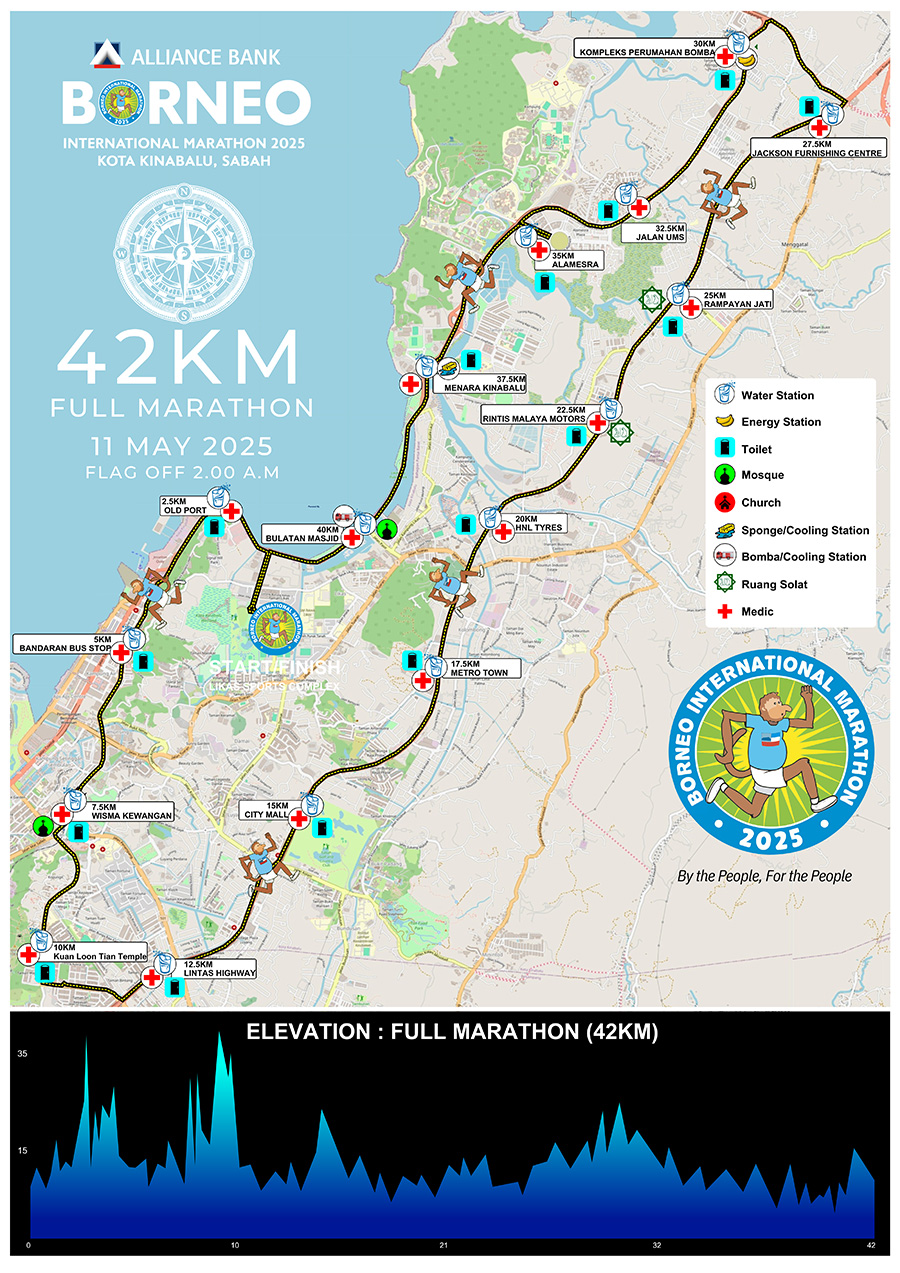 Explore the official race routes for all distances through the scenic landscapes of Kota Kinabalu.